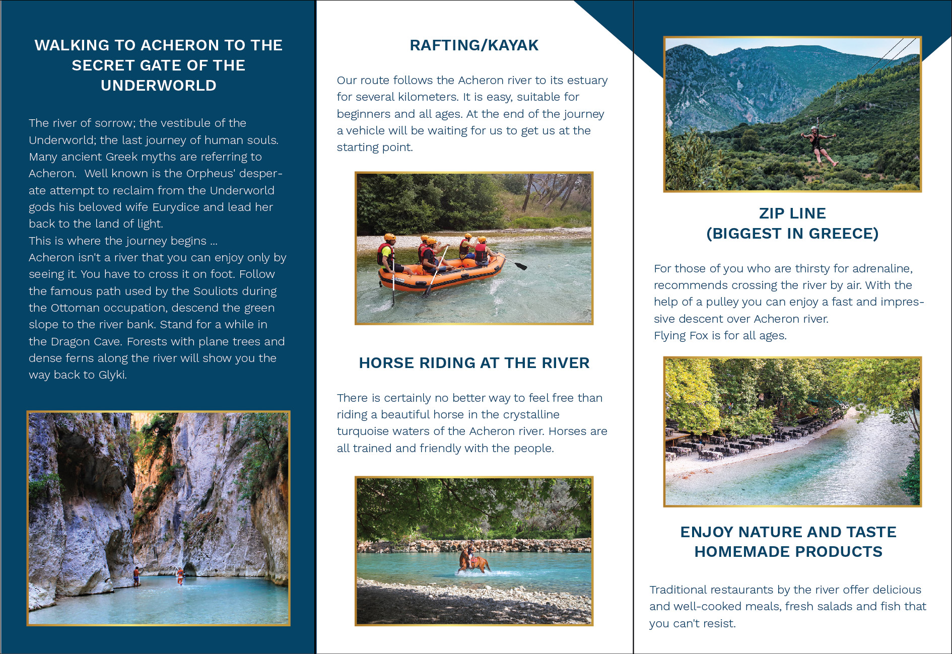For those of you who are thirsty for adrenaline, recommends crossing the river by air. With the help of a pulley you can enjoy a fast and impressive descent of the Acheron river. Flying Fox is for all ages.